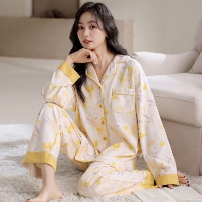 Soft Long Sleeve Spring Autumn Cotton Pajamas Factory